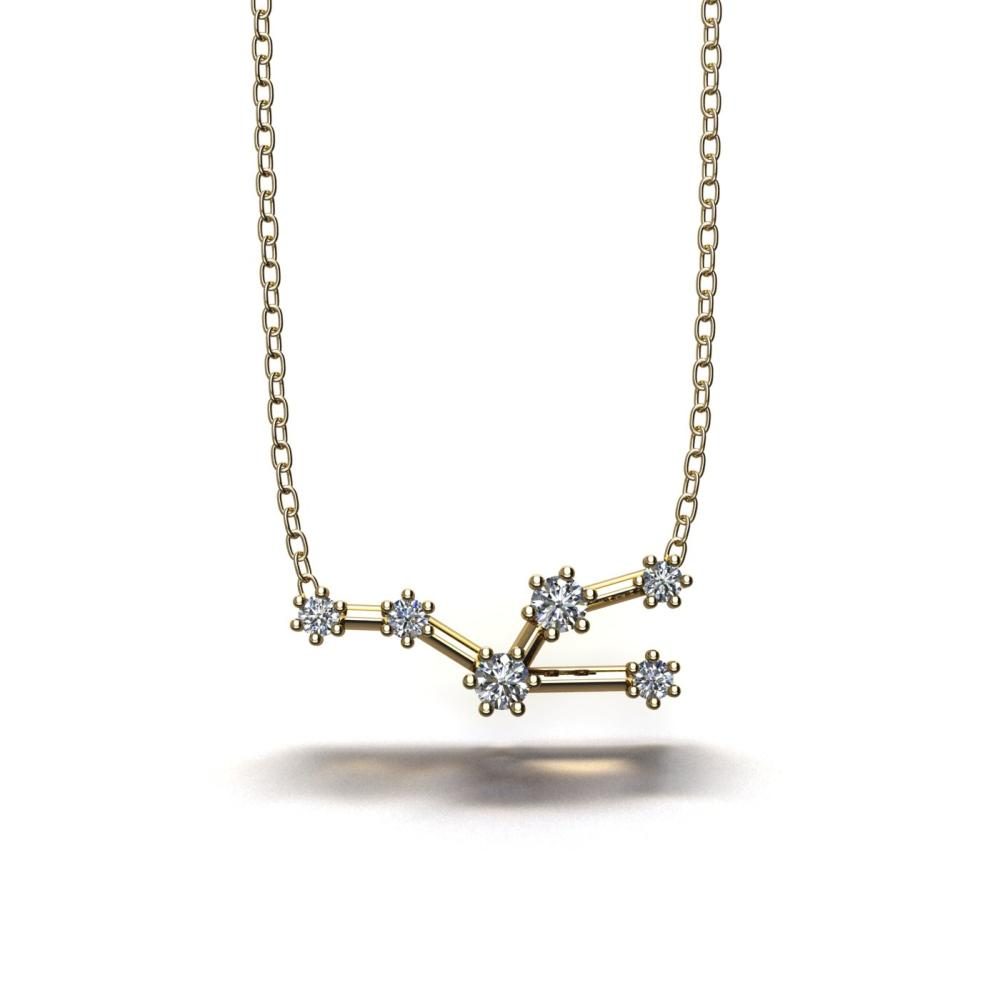 Boğa Burç Haritası Kolye Beyaz Taşlı 14 Ayar Altın