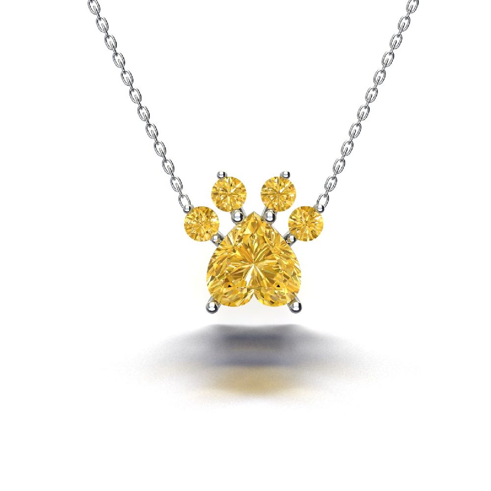 925 Ayar Gümüş Kedi Patisi Kolye Sarı Taşlı